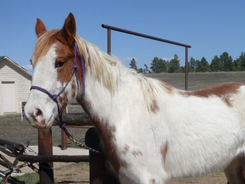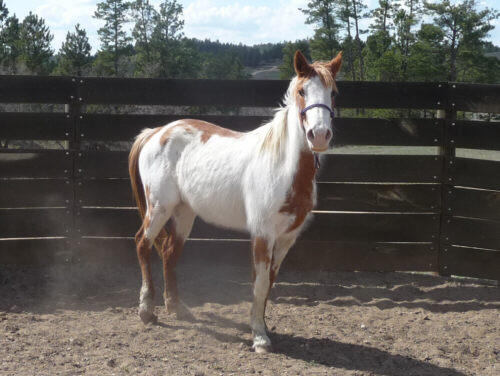 Princess is a coming 3yr old paint filly with a beautiful coloring and dark eyes. She handles good, leads, ties, loads, had some ground work done and is ready to start under saddle. She was used for 4H as a yearling and has seen the show pen, but she has been out in the pasture since then. Sweet disposition, no kick or bite.