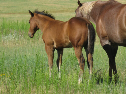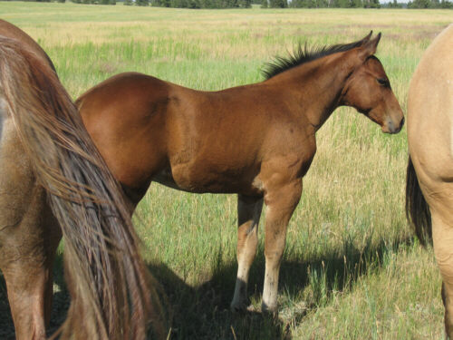 This is a horse that will go all day long discover new trails or get a day's work done at the ranch. He should get tall and stout as a freight train. His full sister was started late under saddle but what a great mind and impressive work ethic!