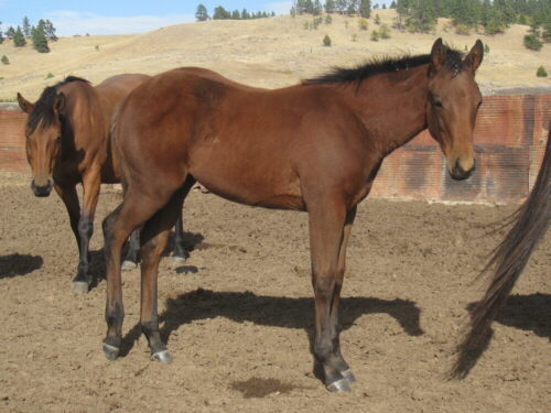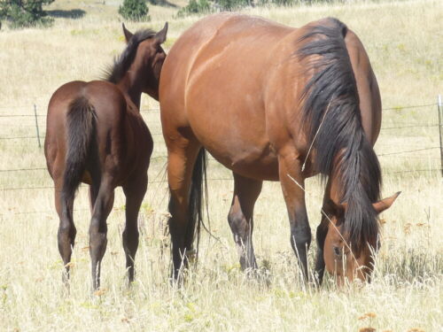 Her sire is Dual Pep (Peppy San Badger) and Freckles Playboy bred, he is our go-to horse to work cattle in fall after he spent the summer out with the broodmares.