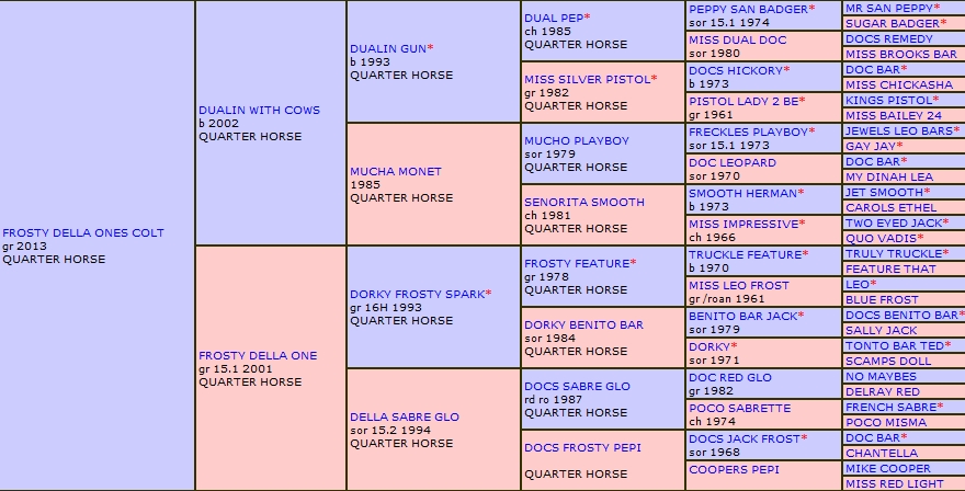 mom was not registered, she is by our Frosty Feature stallion Dorky Frosty