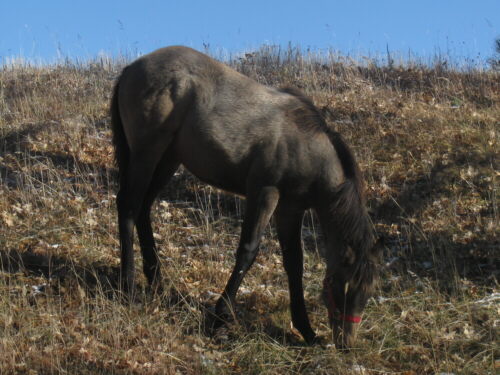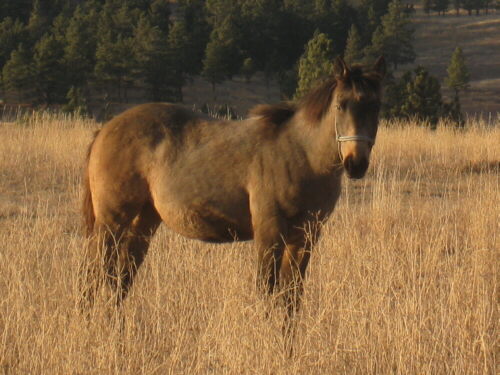 Mayday is halter broke, ties, leads, picks up her feet and all around good handling. Her feet are trimmed, she is wormend, current on Coggins, and ready to go to her new home.