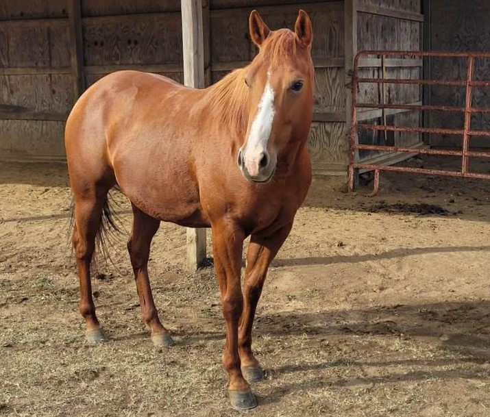 23 sorrel, blaze, left front pastern, left