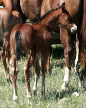 old, the bay stud colt as a weanling; all sired by Dorky Frosty Spark (son